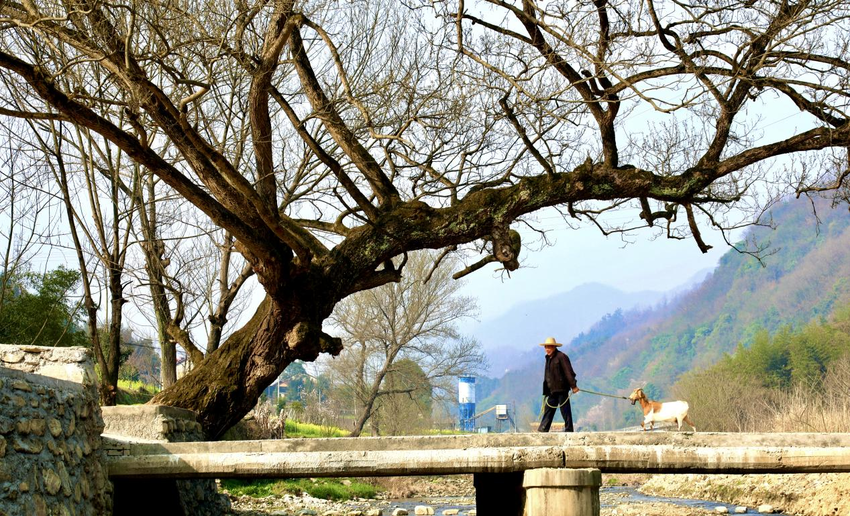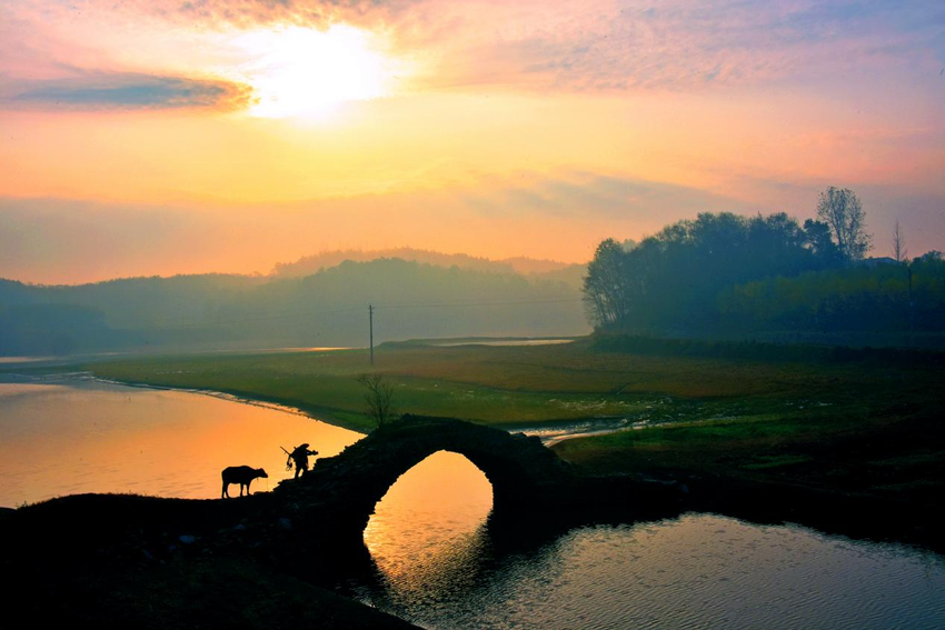 作品:《新桥望古渡,晨光照归牛》,作者:蔡以成