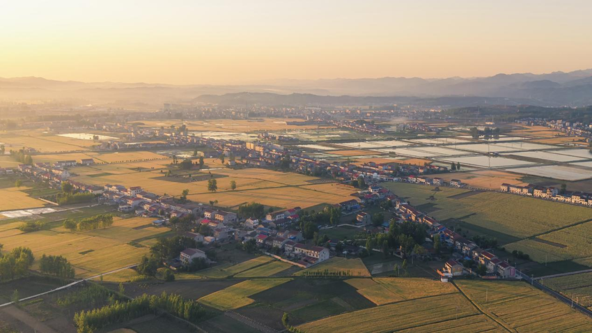 作品:《田园晨曲:破晓时分的张棚村》,作者:李晏林