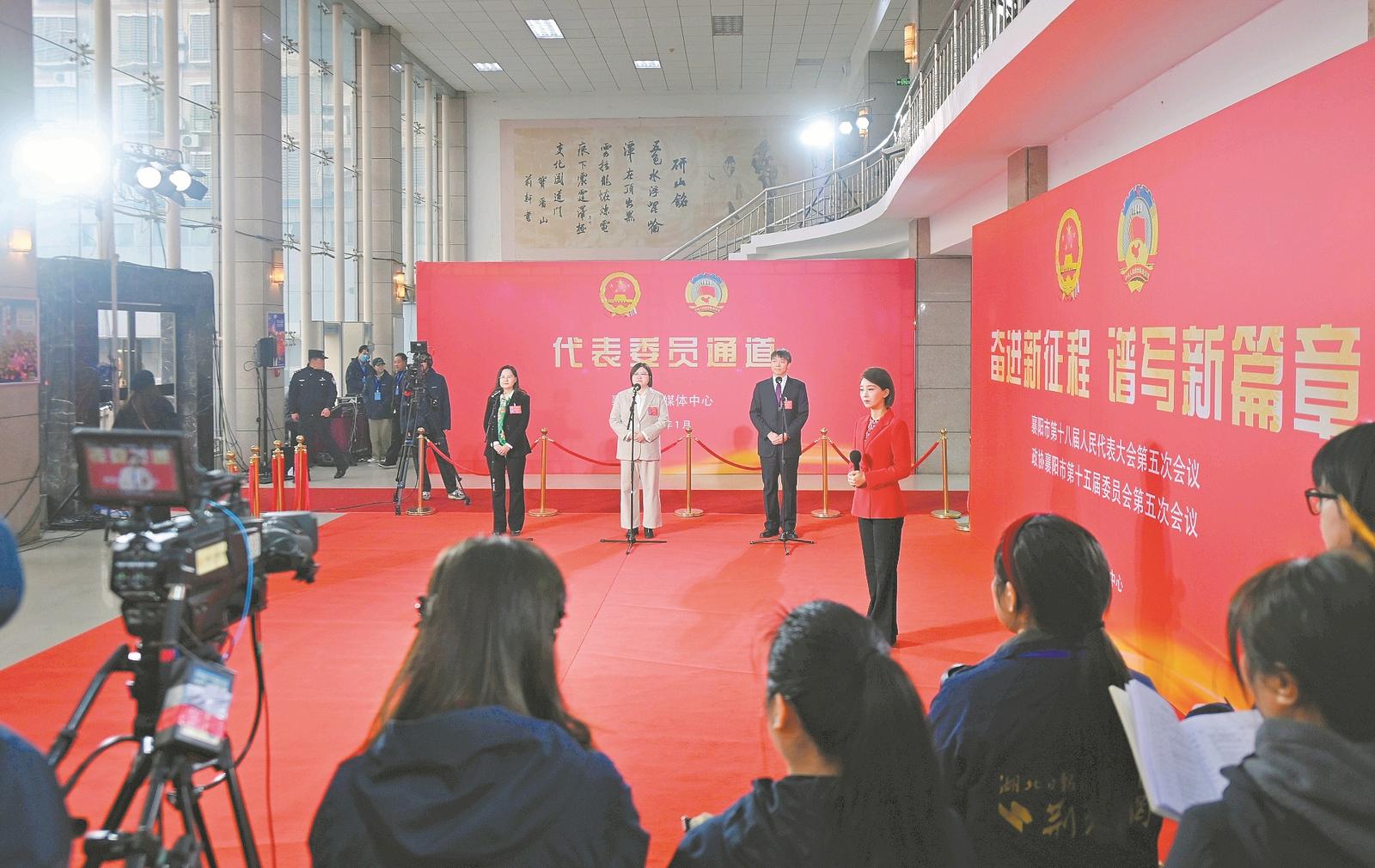 1月14日,襄阳市人大代表在代表委员通道接受记者采访。 (来源:襄阳日报