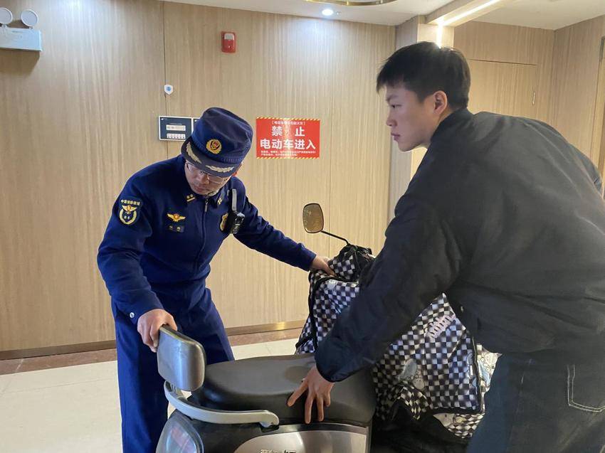 “您好!电动车不能在室内、走廊、楼梯间停放和充电,小区有电动车停车棚,请您把车停放到停车棚里……”,在严格执法的同时,消防监督员现场宣传电动车消防安全常识,结合近年来典型火灾案例,向物业管理人员和居民系统讲解电动车火灾的突发性、危害性及防范要点,普及安全停放、规范充电和初期火灾扑救、应急疏散等实用知识,并组织社区工作人员及物业管理人员对相关违停车辆进行清理,同时要求物业单位切实履行消防安全主体责任,加强日常巡查与动态管理,加快推动集中充电设施建设,切实从源头降低安全风险。