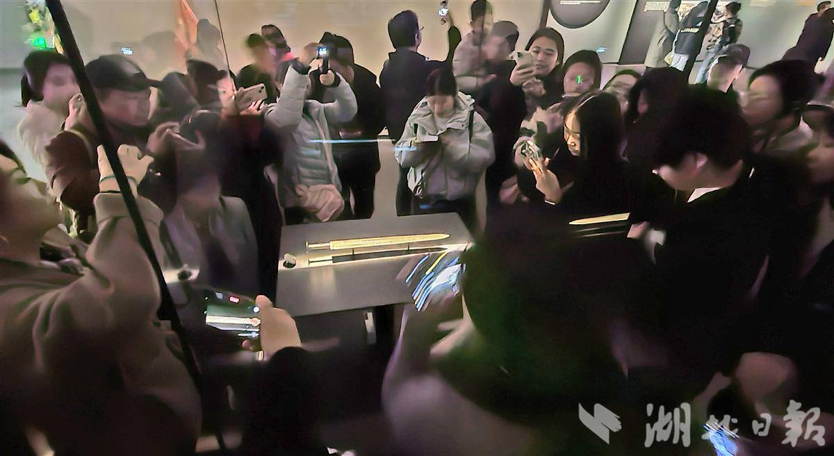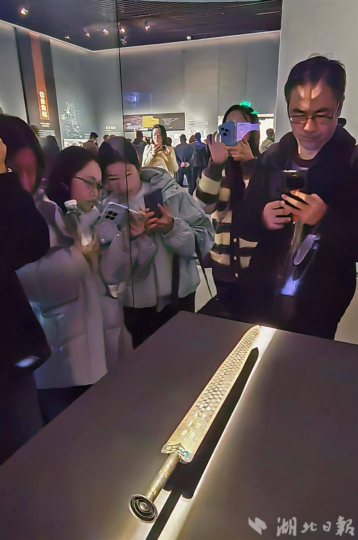 1月15日,湖北省博物馆南馆二楼越王勾践剑展厅内人头攒动,慕名而来的游客排起长队,争相一睹 “天下第一剑” 的真容。