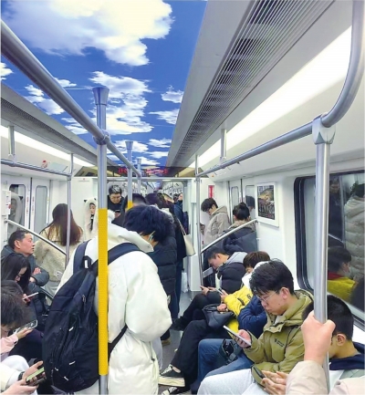 1月11日,地铁11号线坐满前往葛店的乘客。