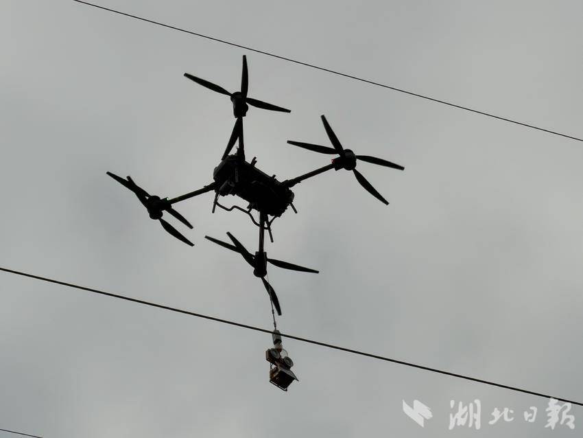 湖北日报讯(通讯员 崔喻源)“无人机再稳一点,对准导线,慢慢降落……”1月17日上午,在随州随县大洪山景区35千伏土白线,国网随县供电公司输电班班长易能智紧盯输电线路,指挥无人机进行防冰机器人安装作业。