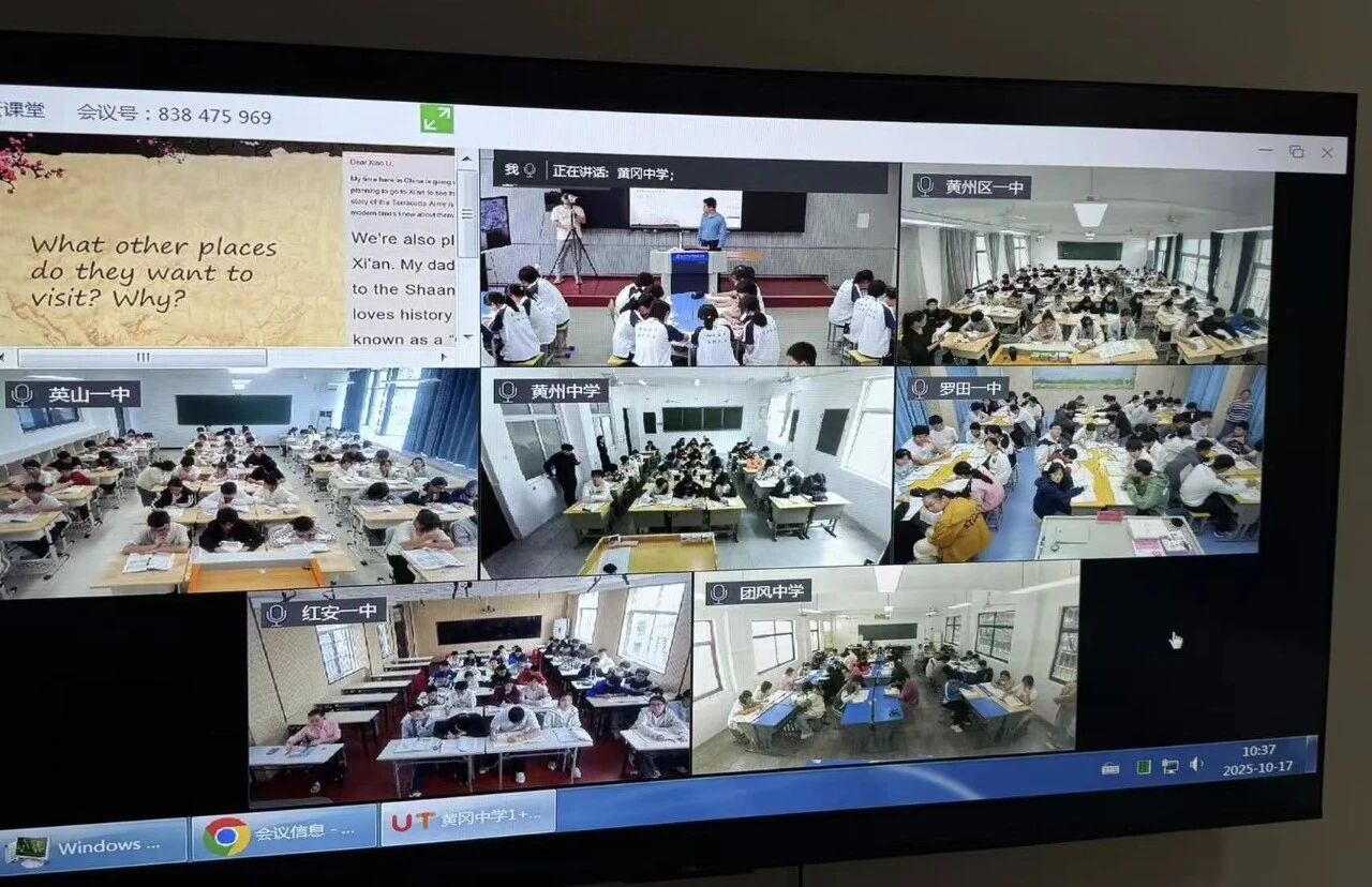 2025年10月31日,黄冈中学老师与黄冈中学联校的6所成员校开展“双师课堂”,6校学生“同上一堂课”。