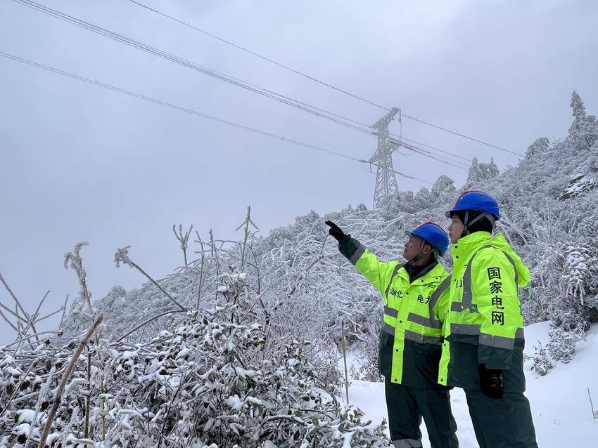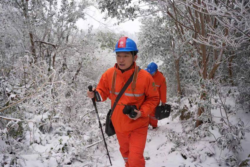 夜幕渐沉,大悟山气温降至零下5摄氏度,寒风穿透棉衣,浓雾遮蔽前路。刘继岽打开头灯,带领班员踏上了夜间观冰的山路。与此同时,笔架村的驻地内,杨军正和青年员工王湘军围坐在一起,对着当日的监测数据逐一分析:“这段线路处于风口,覆冰增长速度快,明天天亮后必须重点巡查,提前做好融冰准备。”