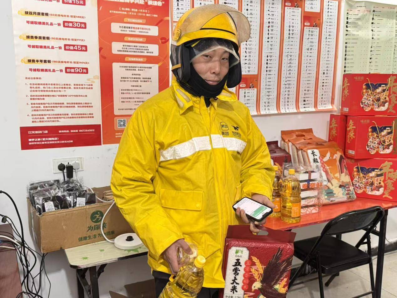 现场营销氛围拉满,海报立牌清晰标注套餐权益、福利内容及时效,让骑手快速锁定优惠。江汉铁塔备好定制好礼与生姜可乐、水饺汤圆等暖冬补给,工作人员提供一站式服务,从解读办理到礼品领取全程顺畅,现场人气爆棚、好评不断。