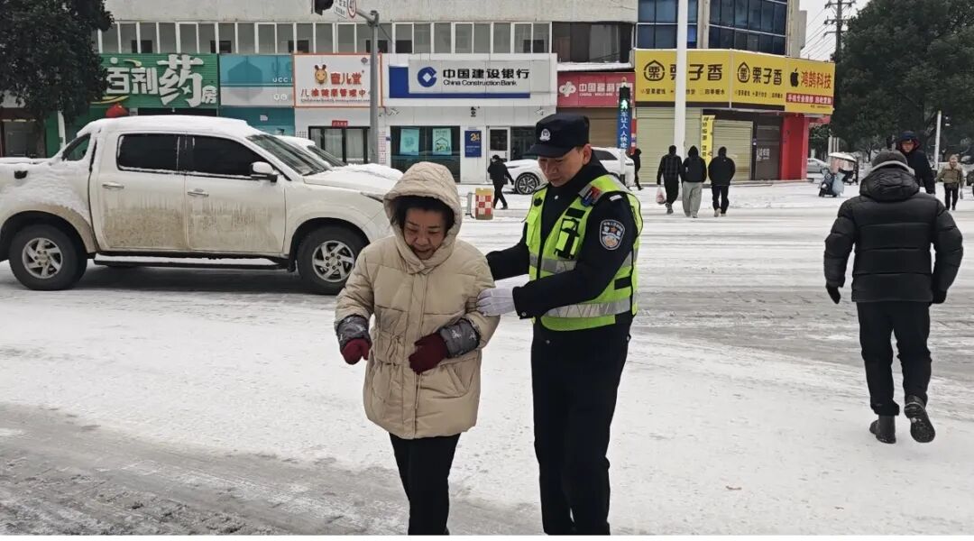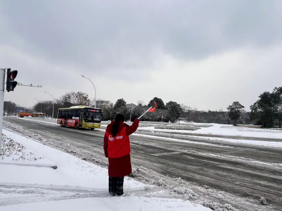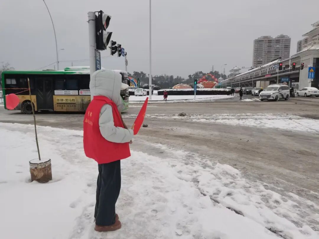 “阿姨,雪天路滑,咱们走慢点。”家住楚天明珠花园的大二学生陆文佳在油泵转盘路口值守,快步上前引导行人走过积雪的斑马线。“看到招募志愿者的通知后,我立刻报了名,家里人很支持我,这样的雪天,就应该我们年轻人站出来。”