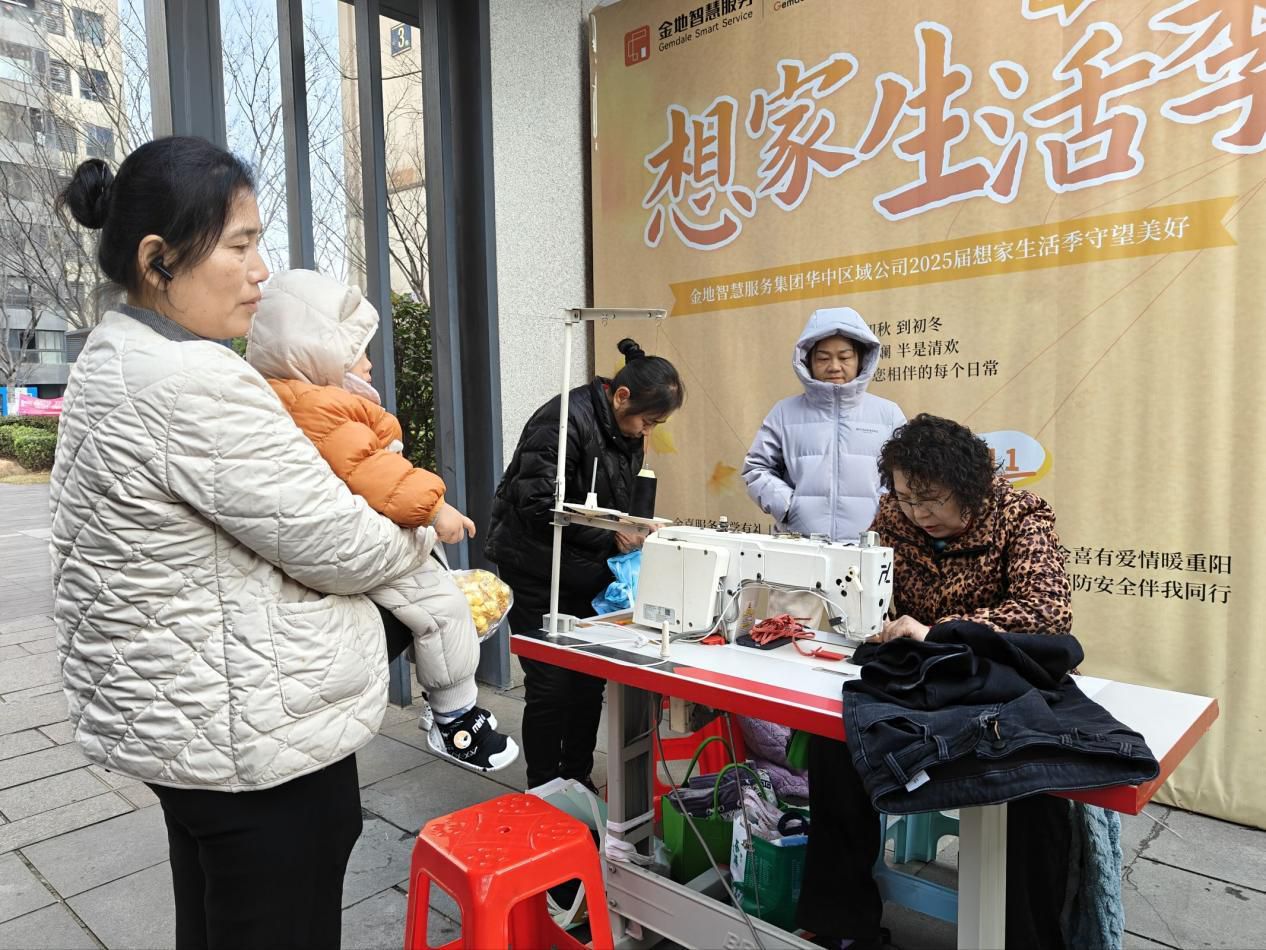 活动前期,社区聚焦中老年群体特点,通过业主群发出活动通知和邀请,向老年居民和家属广泛宣传。同时,联动物业精心规划场地,除设置健康宣讲区、义诊检查区、咨询指导区外,还增设缝纫区、饮品区、美食区,让老年居民在问诊之余能品尝香甜腊八粥,享受便民缝纫服务。