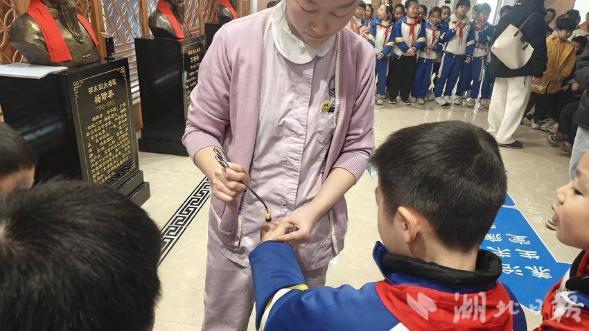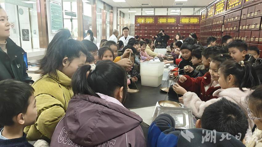 湖北日报客户端讯(通讯员王军珍)阳光正好,童趣飞扬。近日,为传承中医药文化、增进青少年对传统医学的了解,武穴市中医医院特别策划举办了一场别开生面的“中医文化探秘日”活动。一群活泼可爱的小学生带着满满的好奇心走进医院,开启了一场沉浸式的中医药文化体验之旅。