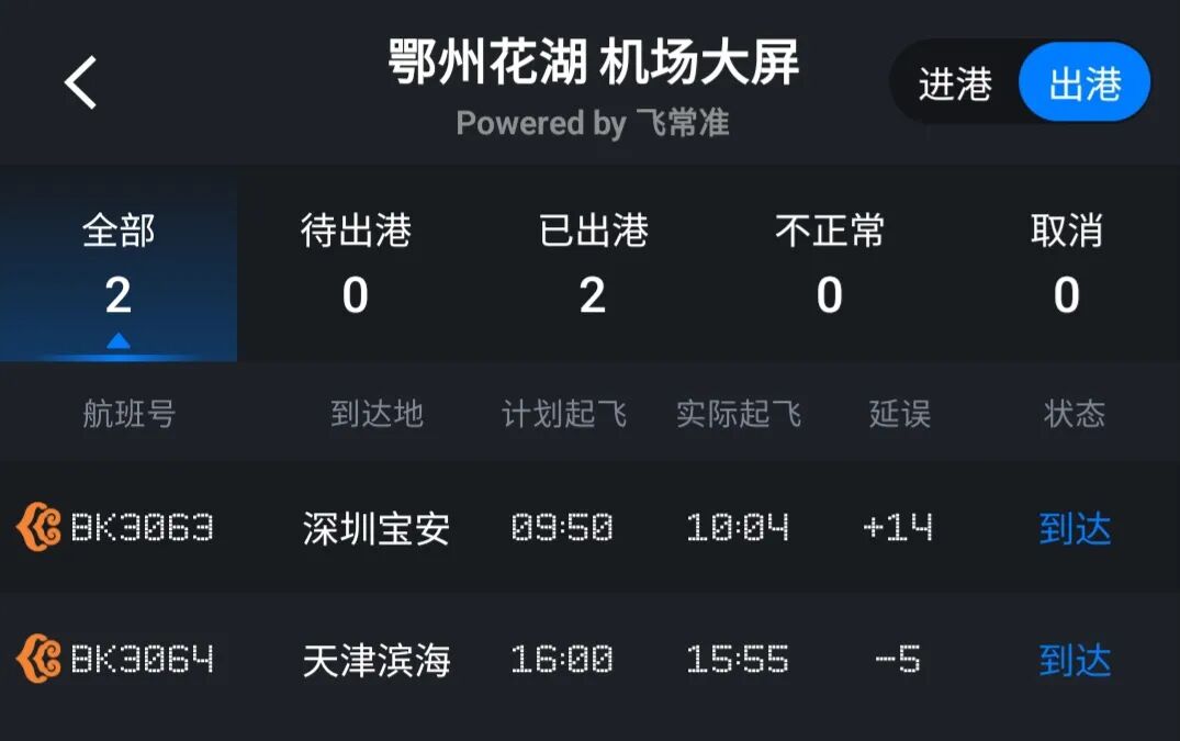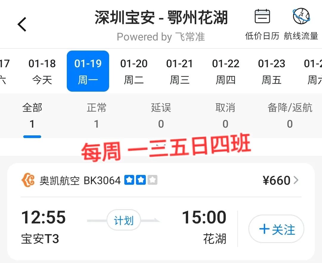 目前,就一条奥凯航空的经停航线撑着鄂州机场的客运门面。还不是每天都有,目前运营每周四班。(下图)