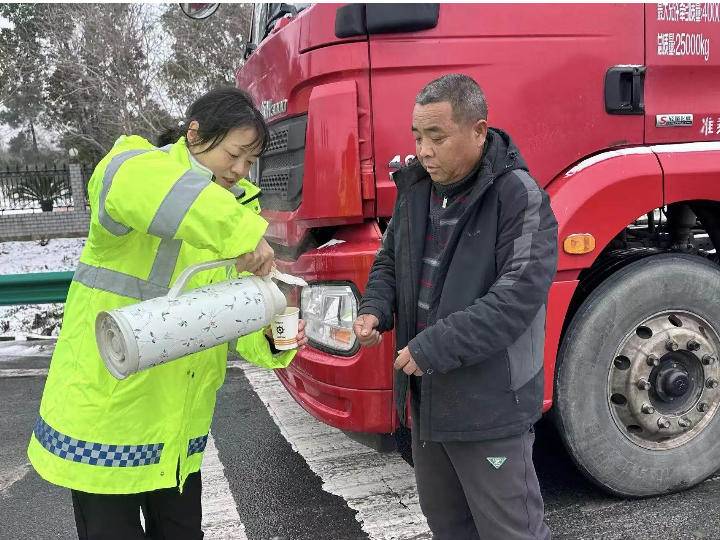 “大哥,雨雪封道,请您耐心等待,室外气温低,喝点姜茶暖暖身子!”1月20日早上8点,滞留在孝感北收费站的货车司机张师傅摇下车窗,接过爱路Ai-lu志愿者胡明艳递过来的热气腾腾的姜茶,疲惫的脸上顿时舒展开来。