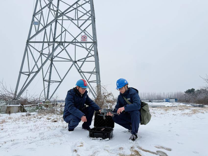变电站运维工作稳步推进的同时,输电线路覆冰巡查工作也在紧张开展。针对雨雪天气易导致线路覆冰、舞动的风险,公司组织检修(建设)工区输电运维人员重点对23条35千伏输电线路开展巡视。由于部分线路途经郊外田野和低洼地带,积雪覆盖了道路,车辆无法通行,巡线人员便徒步前行,通过“人巡+机巡”模式开展立体化巡检,弥补地面巡查视野盲区,实现隐患排查无死角、无遗漏。