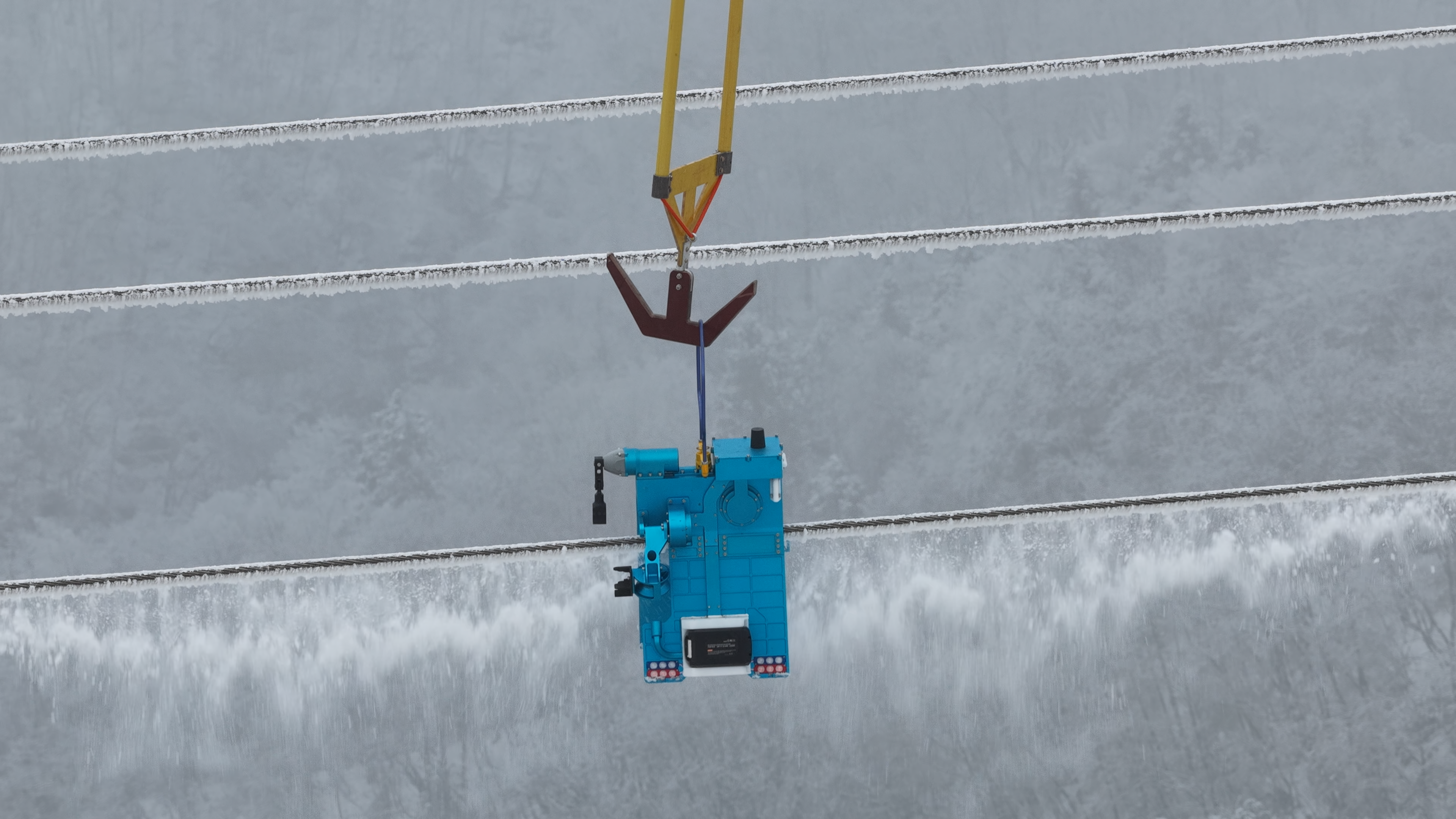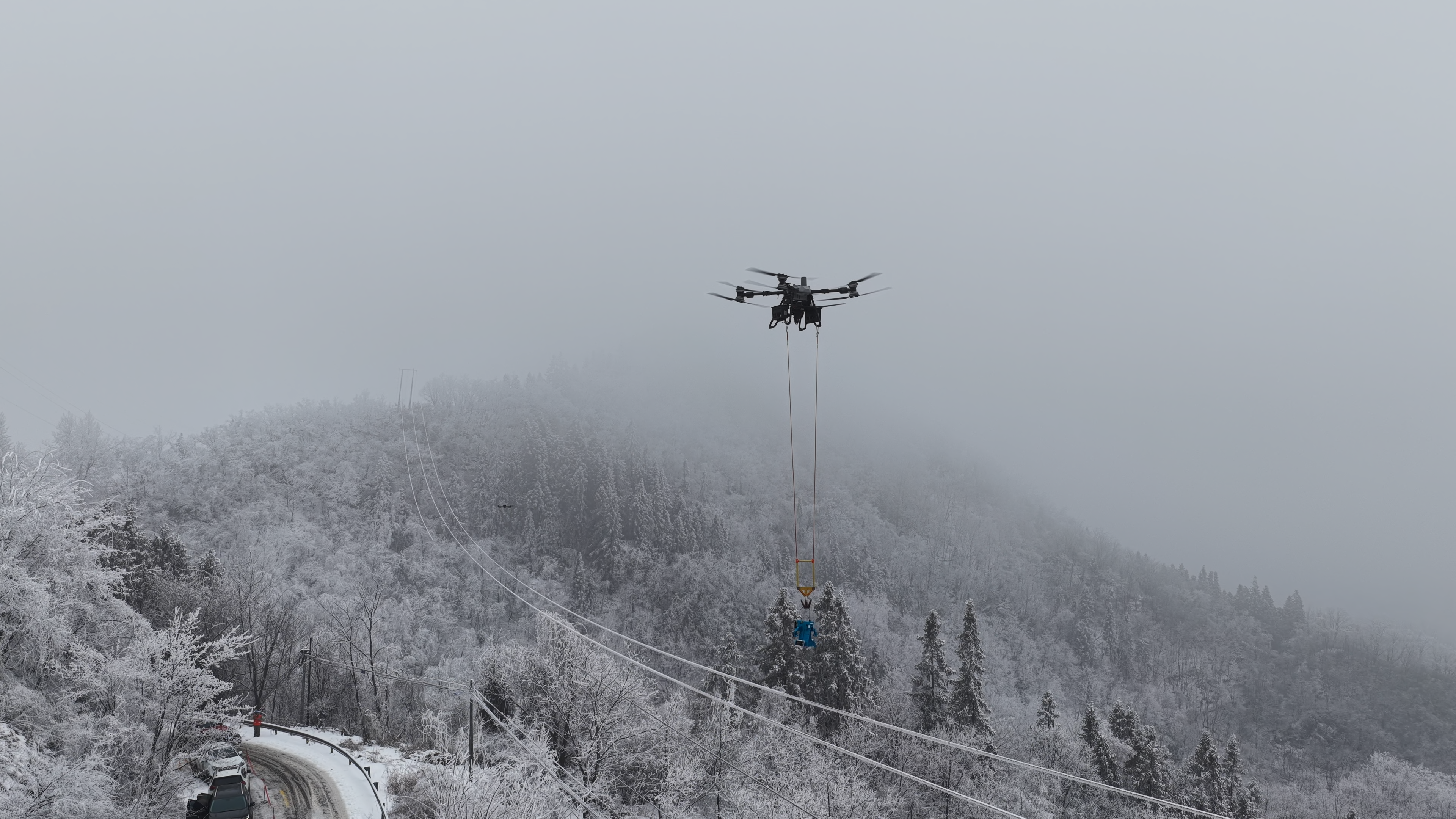 1月20日,十堰大川镇五条岭,国网十堰供电公司首次使用除冰机器人在10千伏川福线上除冰作业。