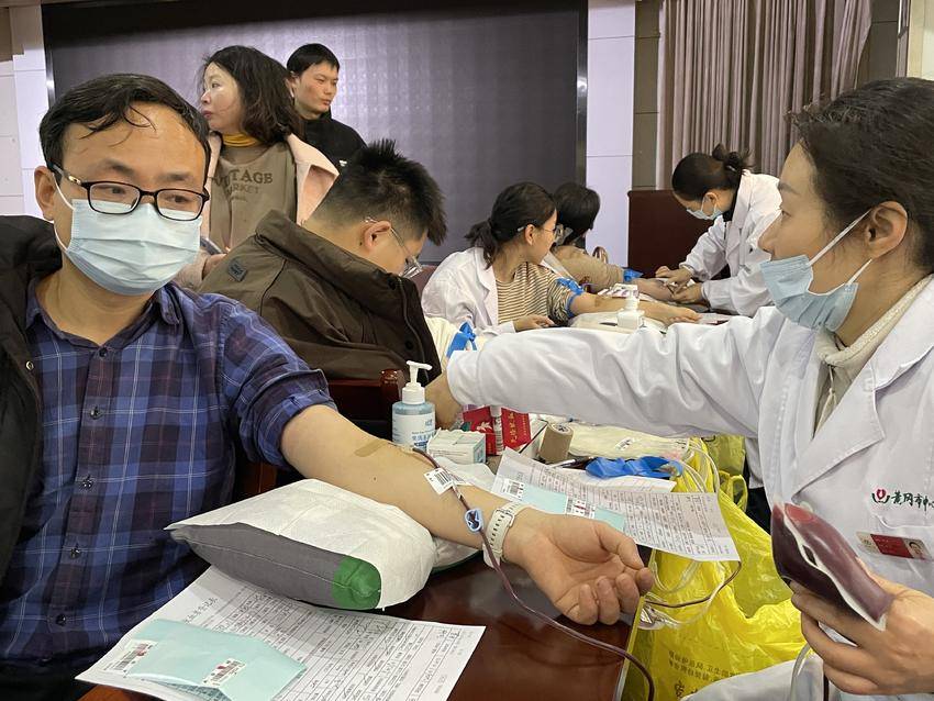 湖北日报客户端讯(通讯员樊言泽)1月20日,黄州城迎来2026年首场降雪。寒意袭人,飞雪漫舞,而在市中医医院门诊5楼学术报告厅内,却温暖如春。一场无偿献血活动正在这里有序开展,来自临床一线、行政后勤的医务人员纷纷挽袖奉献,以热血传递生命温度,用行动诠释医者仁心。