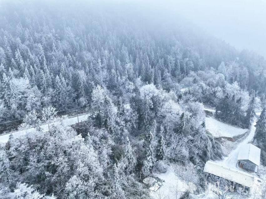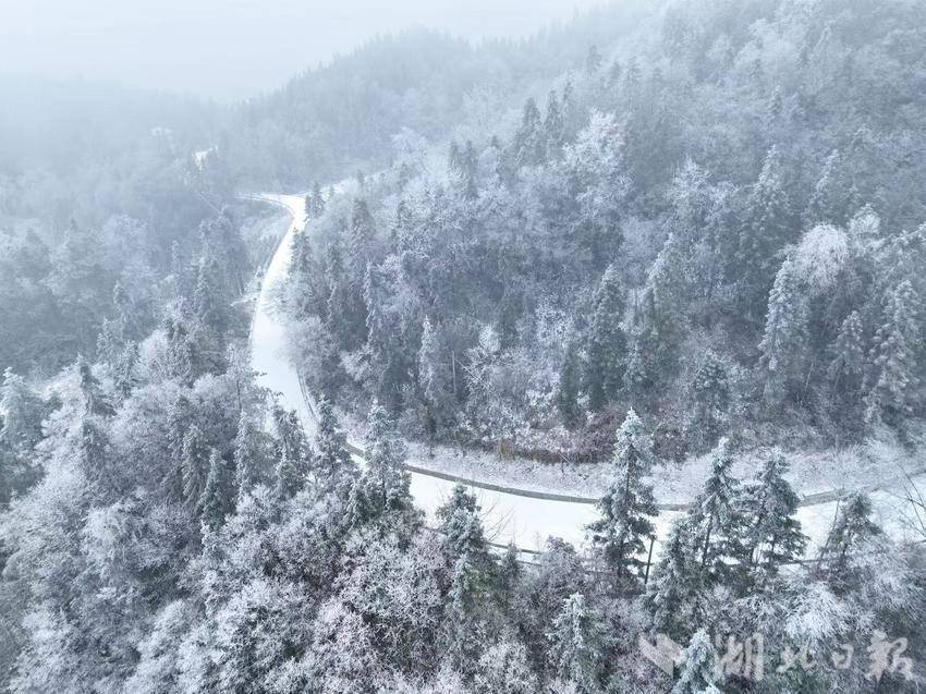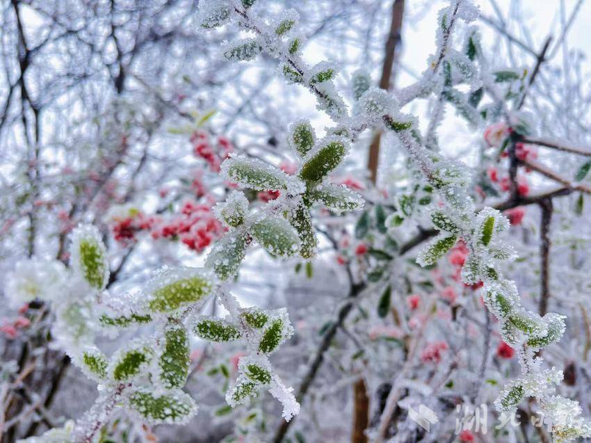 湖北日报客户端讯(通讯员 廖静 李雪梅)雪落千山静,冰凝万木新。1月20日,寒潮如约而至,恩施市新塘乡迎来冰雪盛景,雨凇编织的水晶帷幕笼罩山野。