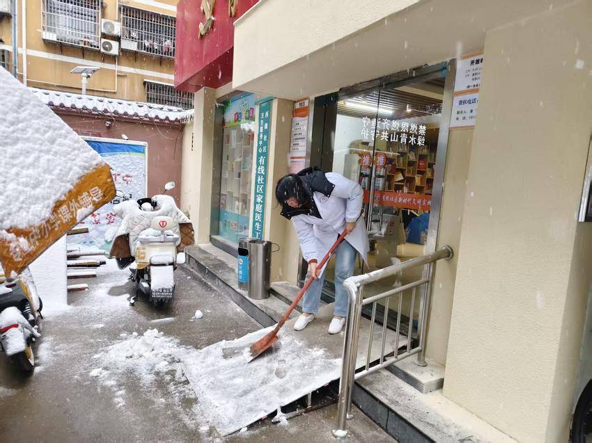 同样的场景也出现在该中心下辖的宝塔、建新、惠民、有线等社区卫生服务站及水韵荷香健康驿站。各站点工作人员主动清扫门前积雪,保障居民就诊路顺畅。