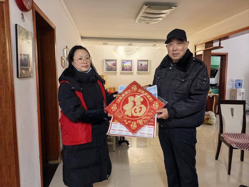 新春将至,寒冬送暖。为传承拥军优属的光荣传统,厚植关爱退役军人及军属的情怀,近日,关帝社区组织工作人员开展为辖区退役军人及军属送新春年画、对联活动。工作人员入户走访,将饱含敬意与祝福的定制春联、年画逐一送到他们的手中,以传统民俗传递牵挂,用贴心关怀温暖寒冬,让尊崇之光温暖这个团圆佳节。