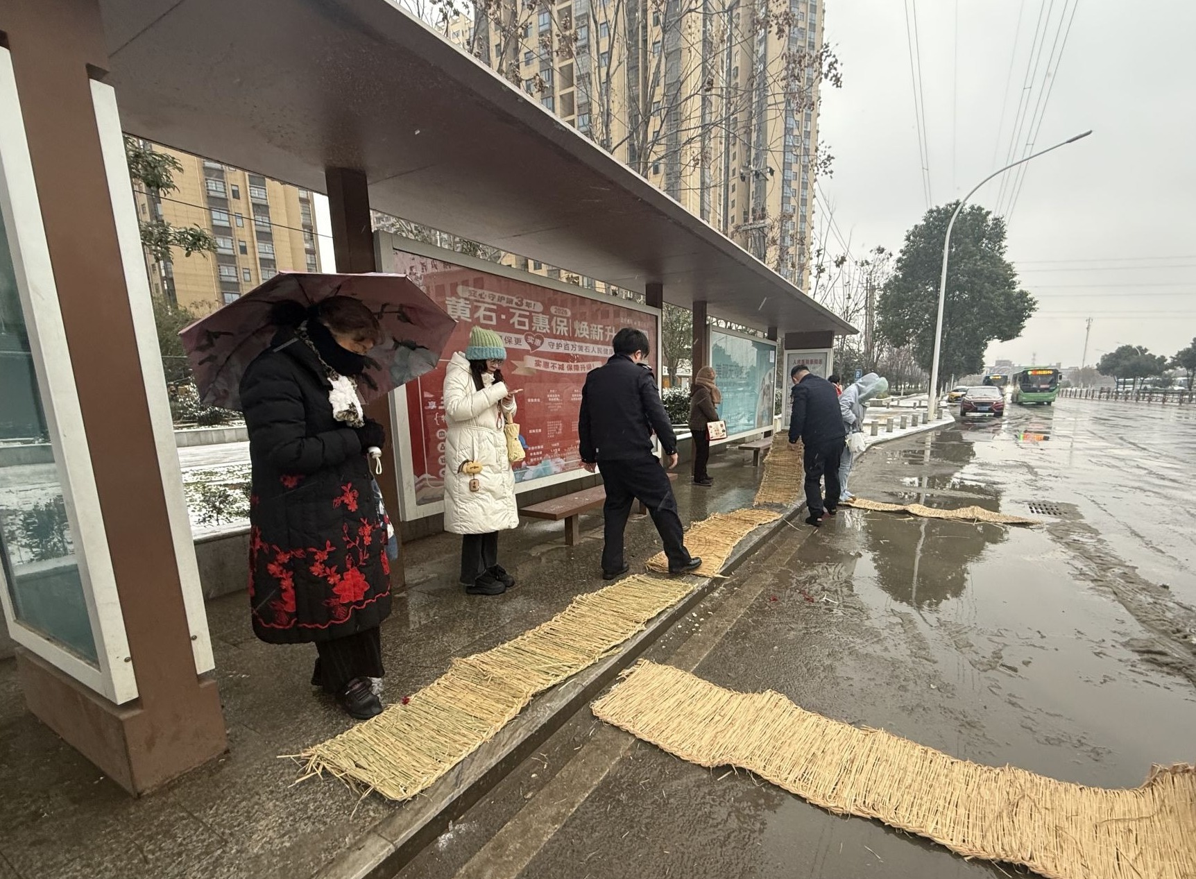 湖北日报客户端讯(通讯员张蕾、黄丹)“今天早上出门办事,还担心路滑难走。看到城管铺好了草垫,心里一下子踏实了。”1月20日上午,市民卢霞在罗家桥街道东港路公交站旁,踩着刚铺好的防滑草垫安全地通过。
