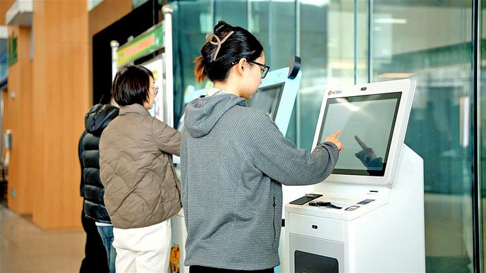 市民在操作AI问诊机器人 摄影:楚天都市报极目新闻记者胡长幸