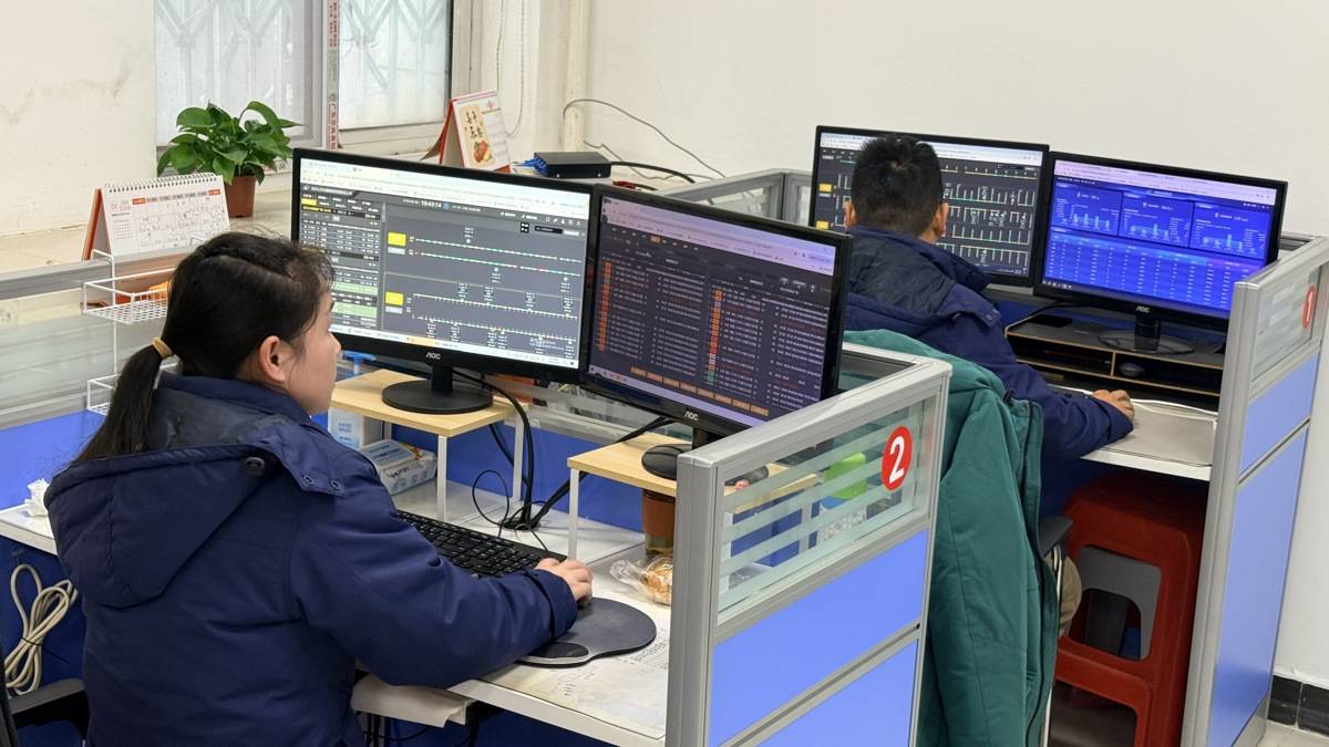 “看,雄楚大道这一段已经变成了深红色,说明堵得非常厉害。”她指向其中一条线路。根据屏幕上由北斗系统与地图数据融合生成的“模拟图”,调度员能实时掌握每条线路的运行速度和拥堵情况。颜色由绿到红,直观反映了从畅通到严重拥堵的道路状态。