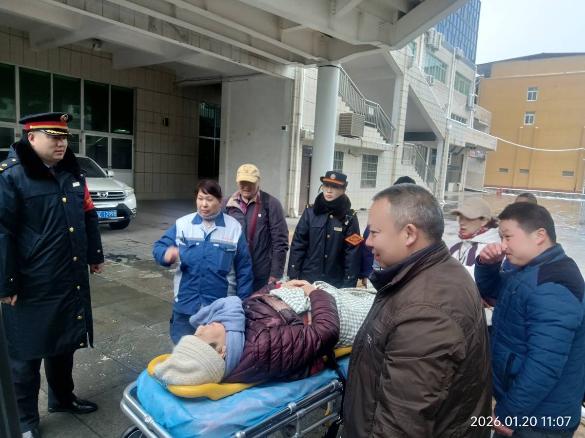 “慢些,大家注意脚下,别碰到病人。”1月20日10时43分,K123次普速列车正点抵达十堰站。由列车乘务组、车站客运员与120急救人员组成的临时转运小组,小心翼翼地将一位骨折老人从车厢转移到站台担架上。