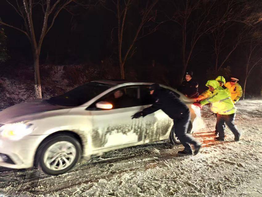 在保安全保畅通、处置险情的同时,一线执勤民辅警积极为受困群众提供必要帮助,遇车辆陷雪窝、侧滑、抛锚等情况,迅速开展拖拽、推车救援,对滞留驾驶人,提供暖心安抚与物资帮扶,还会联动寻找临时安置点,积极为群众排忧解难。在寒风冰雪中展现了随州公安交管的温度与担当,用坚守成为冬日里最暖的“警”色。