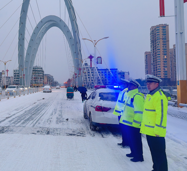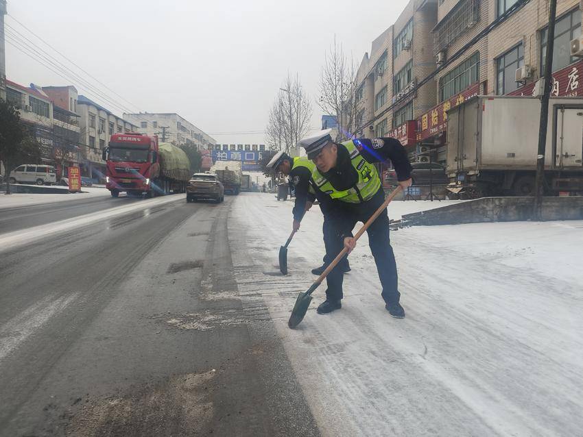 在城区青年路大桥、桃园大桥、编钟大桥、白云大道、沿河大道等主要路段、桥梁、国省道重点区域,执勤民警采取警车带道、指挥疏导等方式加强巡逻管控,及时排查消除道路隐患;高警大队联合“警路企”三方力量,对高速易结冰路段开展融雪剂撒布、铲雪除冰作业,设置警告提示标志引导车辆安全通行。