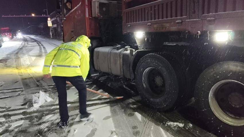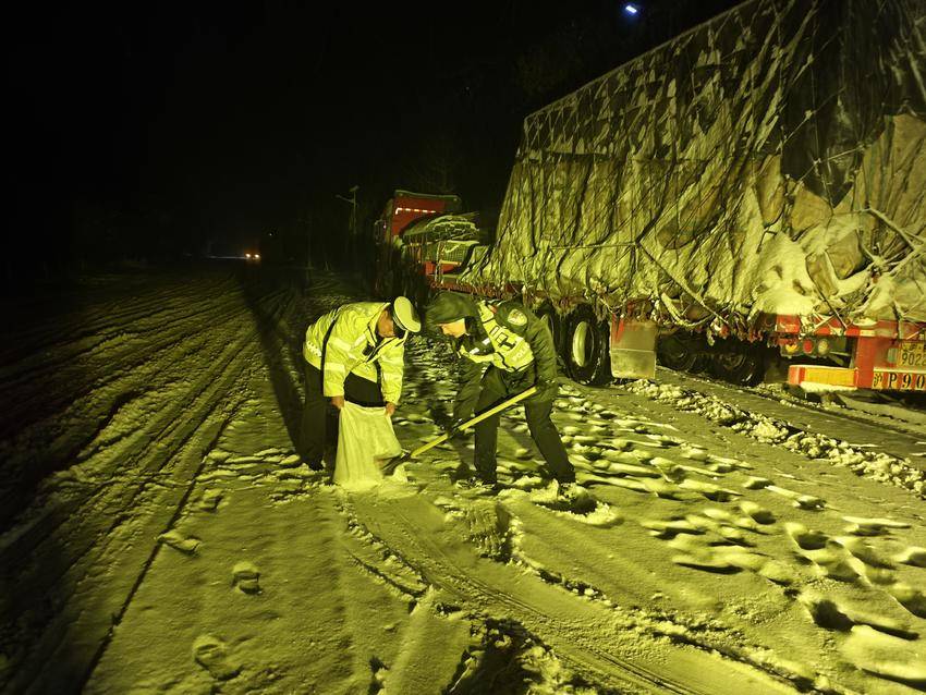 湖北日报讯(通讯员解超、李月仙)1月19日以来,随州遭遇大范围强降雪天气,境内国省道、高速公路路段出现积雪结冰,部分车辆通行受阻,司机面临滞留困境。随州公安交管部门以雪为令、闻雪而动,迅速启动冰雪天气应急预案,全警动员投入破冰除雪保畅与便民服务工作,用坚守与担当为滞留司机筑起温暖防线。