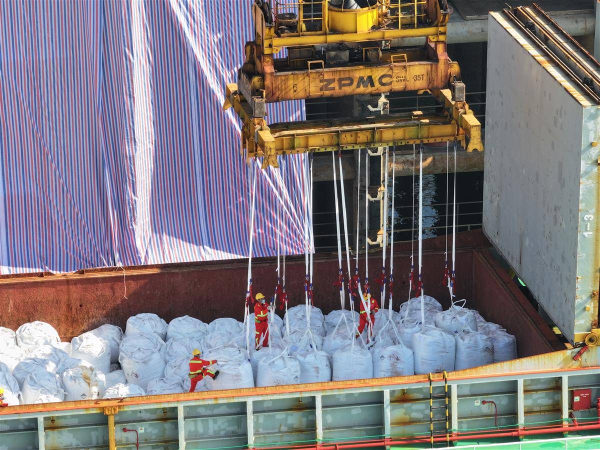 通过江海联运,格林美的原材料快速从印度尼西亚抵达阳逻港。(受访者供图)