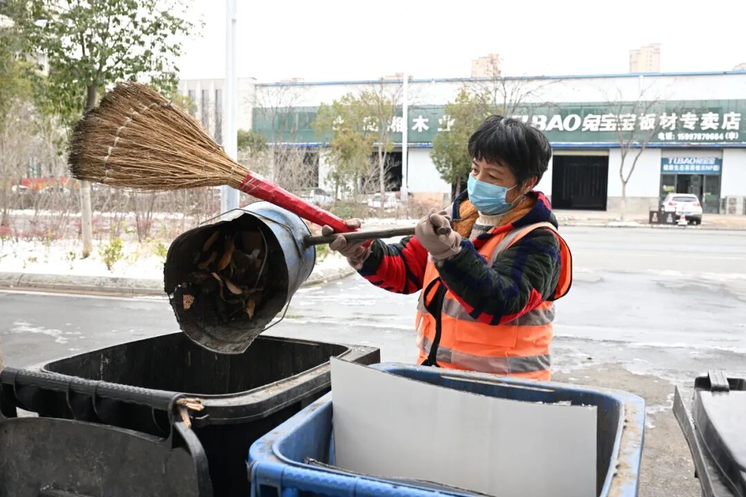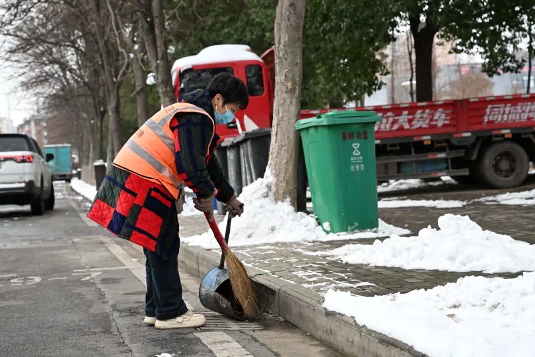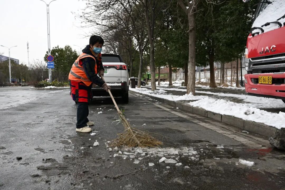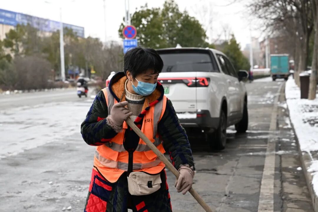 “早上气温低,确实很冷,但是戴着手套,干一会儿活,全身就热乎了。雪天越是要抢时间,得让大家出门有路走。”肖红霞边扫雪边笑着说,铁锹与冻硬的路面碰撞出清脆的声响。