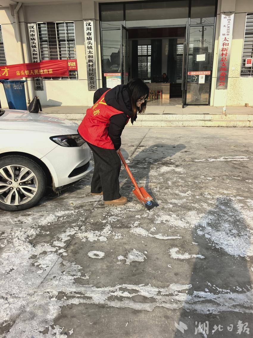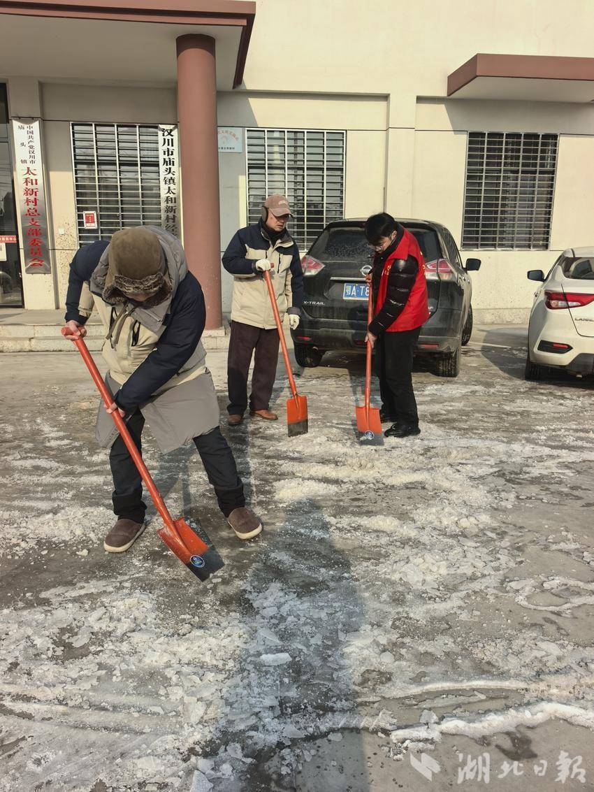 湖北日报客户端讯(通讯员王青)近日,汉川联通“医保服务先锋队”赴庙头镇太河新村开展2026年度城乡居民医保政策宣传活动,队员们与村委干部携手行动,一边开展医保便民服务,一边全力铲除路面积冰,用实际行动践行“人民邮电为人民”的服务宗旨。
