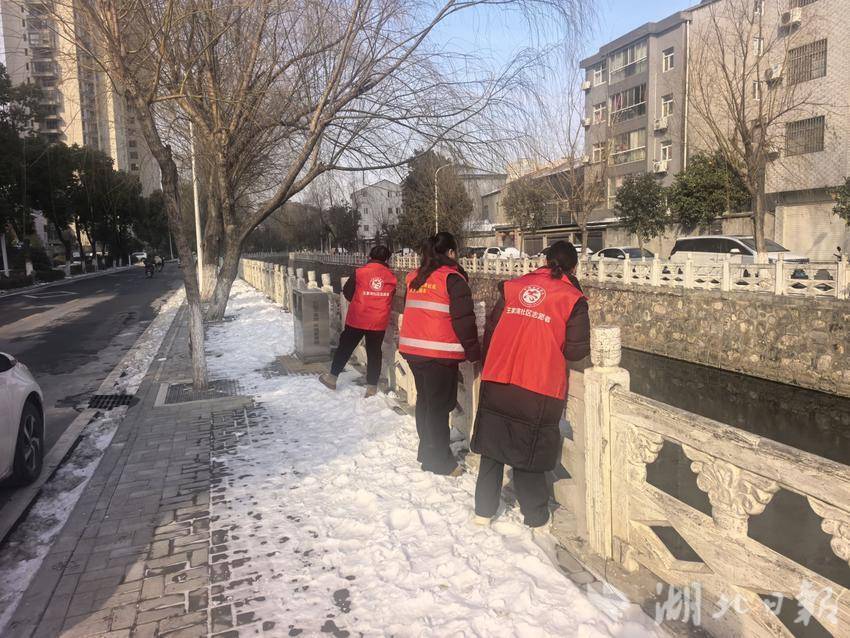 1月22日,钟祥市郢中街道王家湾社区组织工作人员、网格员及志愿者,对镜月湖及欧家台段面开展河湖整治巡查行动。