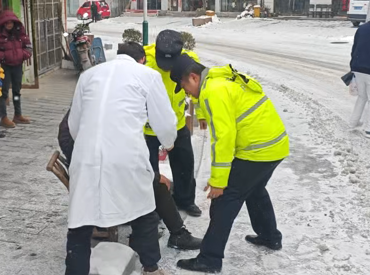 “老人在雪地里摔倒站不起来了,得马上过去!”接到消息后,护士田仕巧第一时间向院长安祥葶汇报。