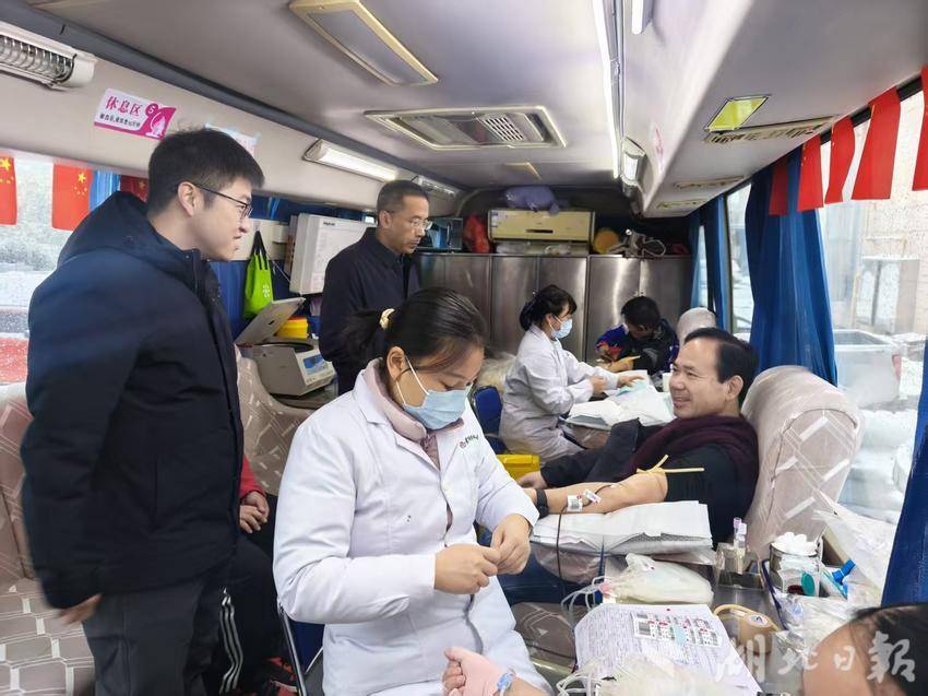 尽管活动当天大雪席卷全城,医务人员献血的热情却丝毫未减。在血站工作人员的引导下,大家有序进行信息登记、健康征询、血压测量和血液初筛等流程。