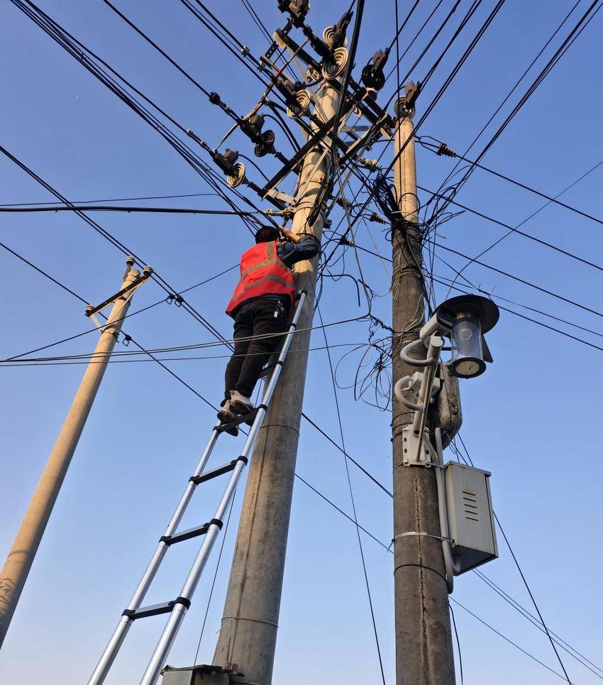 1月16日下午,孝南区110省道下程湾的电线杆旁,身着反光背心的通信技术人员正借助梯子对线路进行优化作业——这是当地通信服务团队开展的“乡村线路焕新”专项行动,旨在解决村落通信线路老化、信号不稳定等问题。