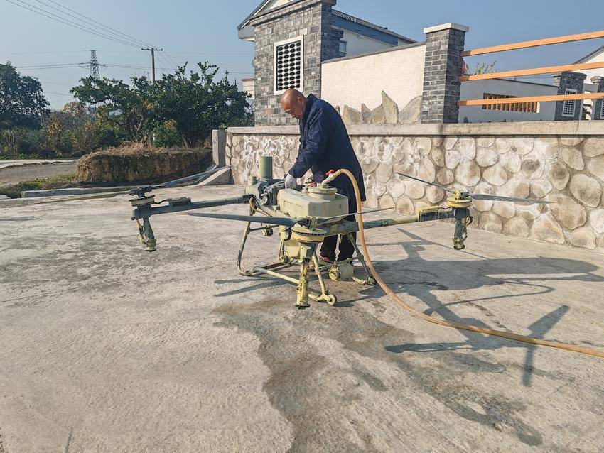 为提升防治效率,桔丰专业合作社深耕统防统治服务,组建专业防控小队。飞手精准操控无人机,配药员科学配比药剂,各环节分工明确、高效协作。这种作业模式不仅省时省力,还能实现药剂均匀覆盖,大幅提升防控效果。