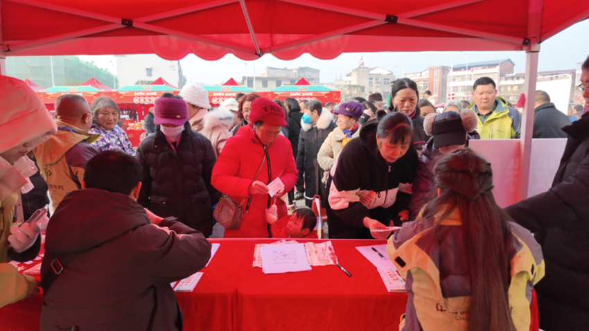 年货展销区更是人气爆棚,涵盖特色风物、休闲食品、生鲜年味、家居年礼、美食体验及惠民服务六大板块,汇集了随县本土农副产品、传统腊味、非遗手作等丰富品类,满足群众多样化采购需求。现场特设的惠民服务专区,提供健康咨询、农技指导、金融反诈等便民服务,赢得了群众广泛好评。