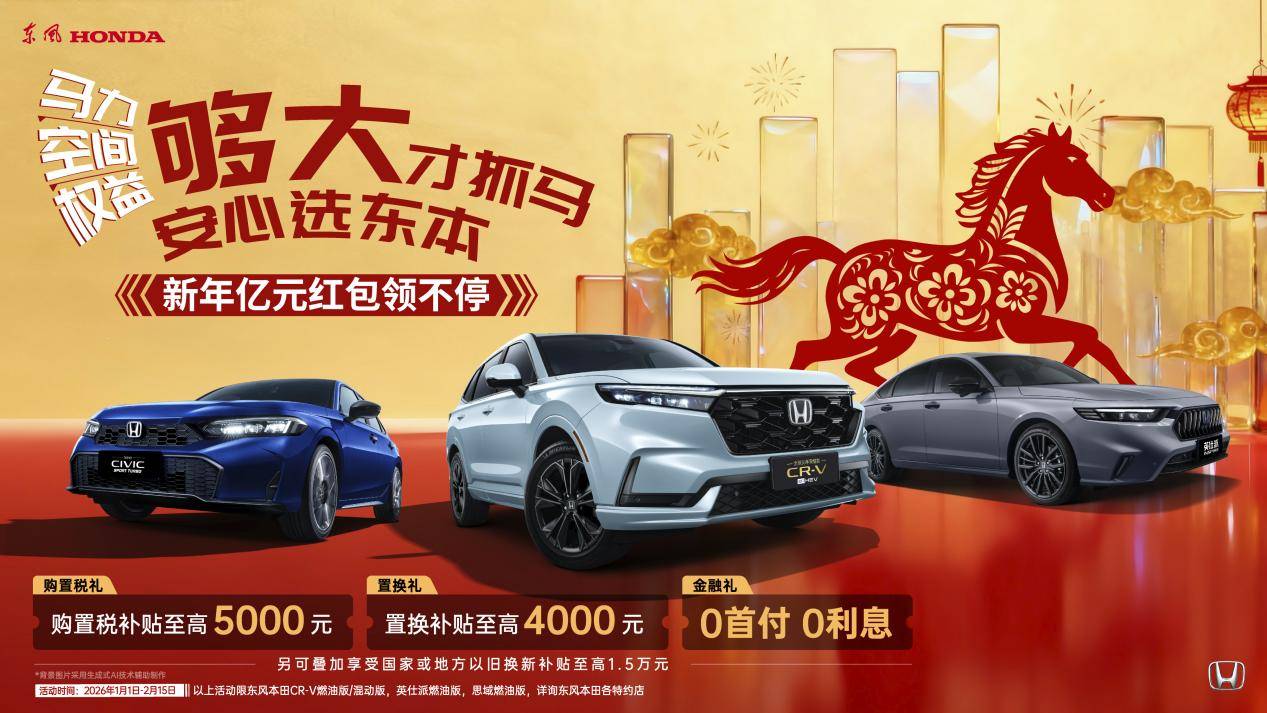 随着马年新春的日益临近,不少消费者纷纷将购车或换车提上日程,希望为新年增添一份实实在在的喜悦与便利。为了回应这份期待,2026年1月1日,东风本田发布了“安心选东本,新年亿元红包领不停”的优惠活动,截止2月15日前,购车用户可享受多重好礼。与此同时,2026年中国车谷品牌运营中心汽车消费券活动也同步启动。这意味着,购买东风本田旗下的部分车型,即可享受到品牌新春钜惠,与地方政策补贴的双重礼遇。
