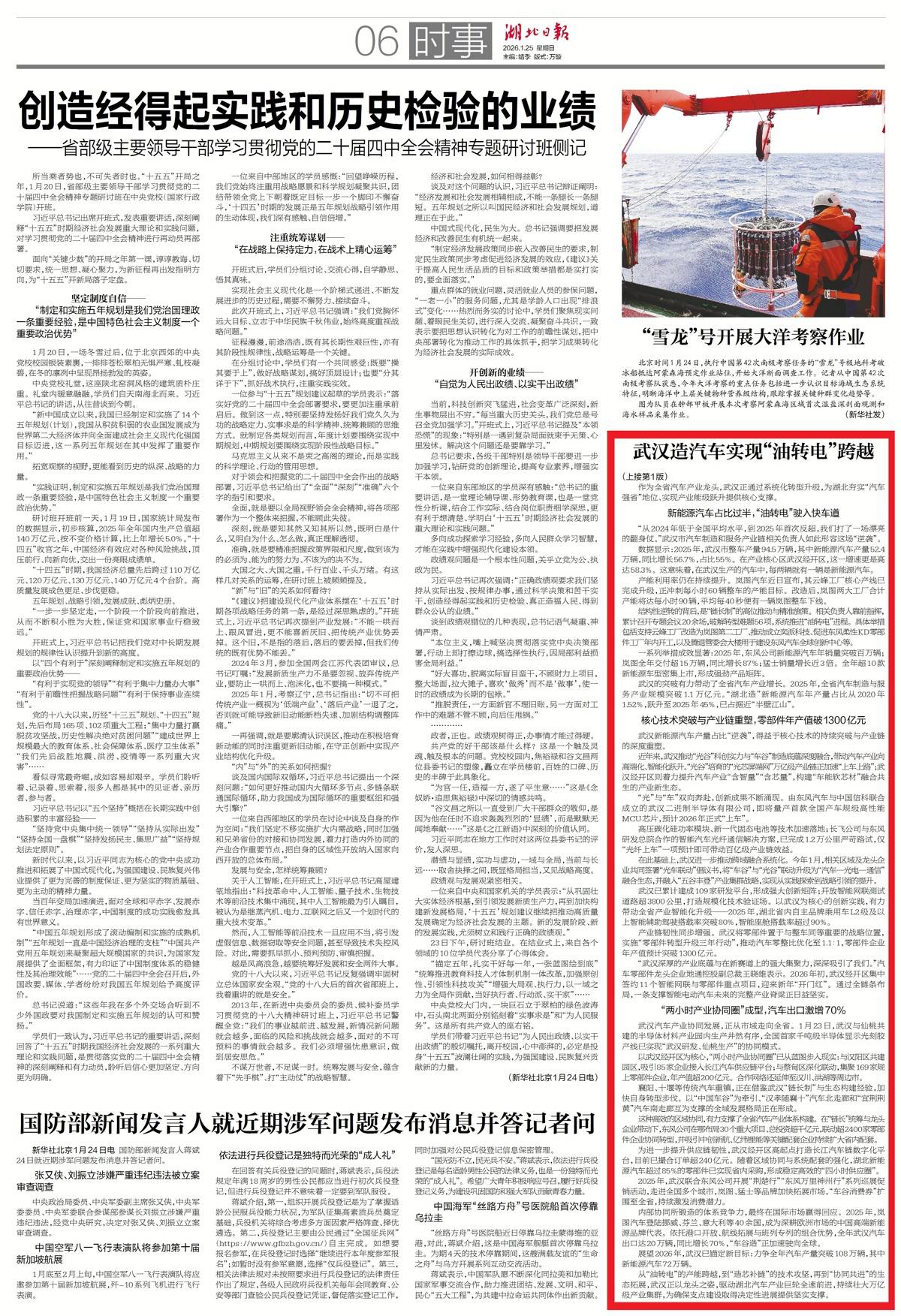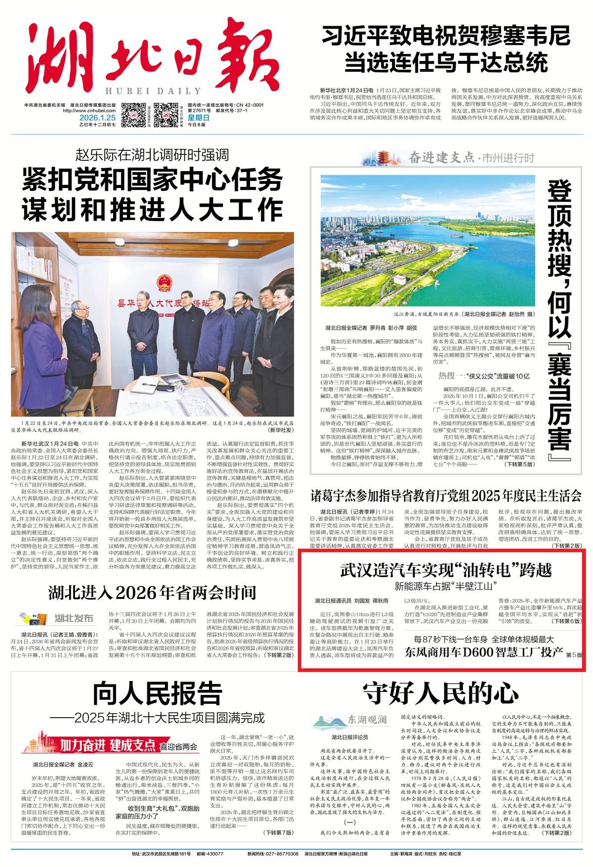 湖北日报头版报道武汉造汽车实现“油转电”跨越
