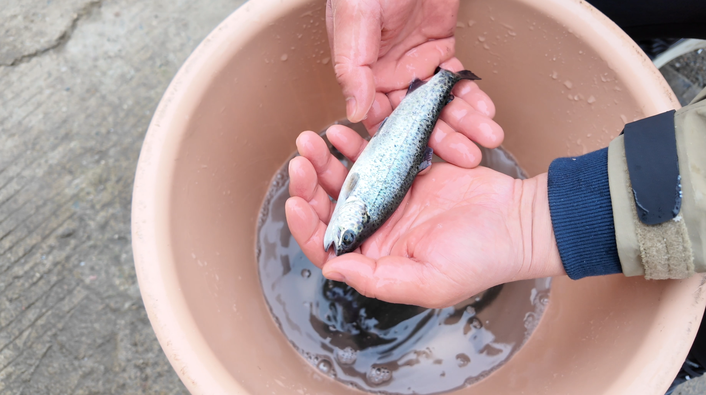 西班牙虹鳟鱼苗正在鱼盆内生长(受访者供图)