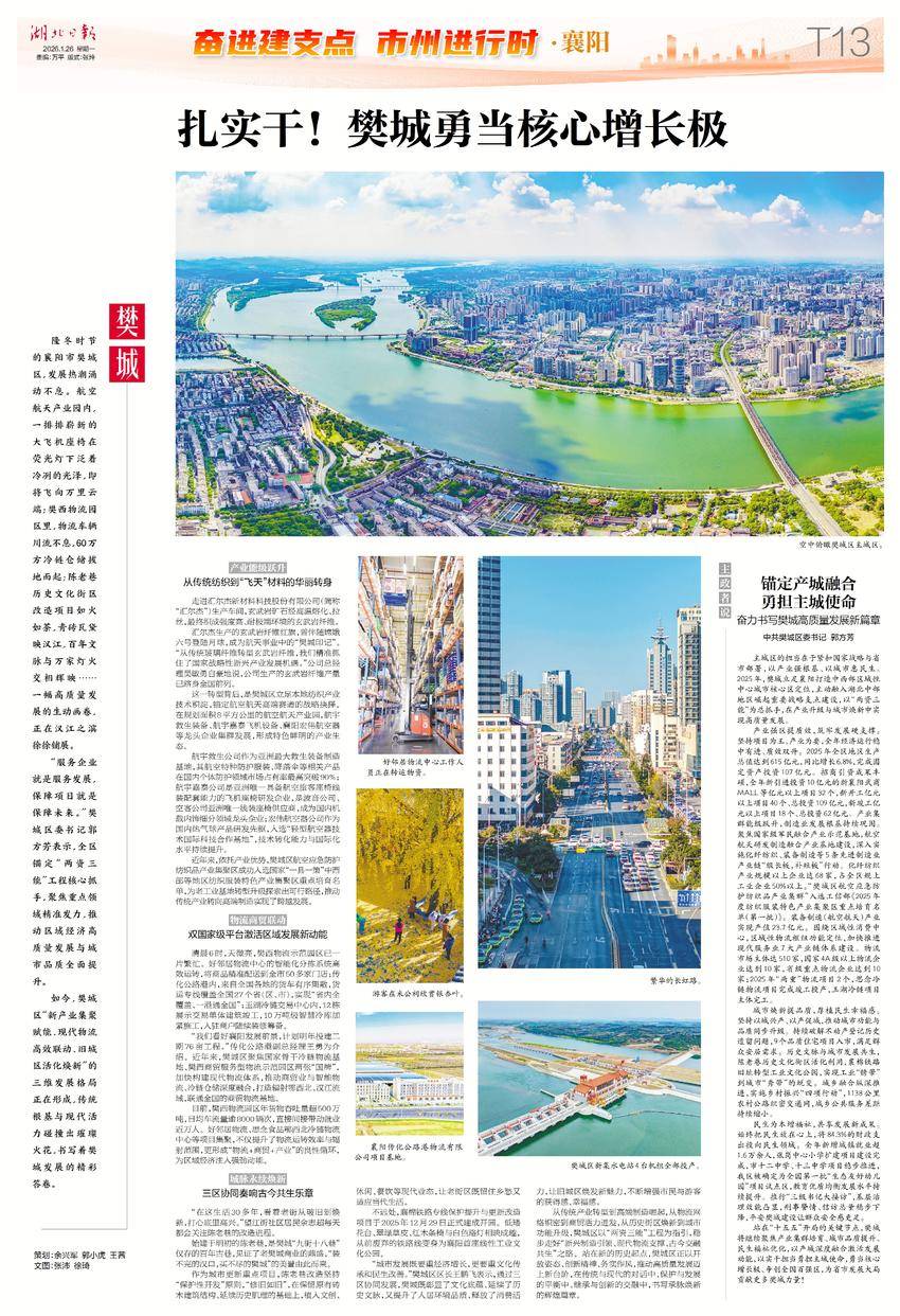 站在“十五五”开局的关键节点,樊城将继续聚焦产业集群培育、城市品质提升、民生福祉优化,以产城深度融合激活发展动能,以实干担当勇担主城使命,勇当核心增长极、争创全国百强区,为省市发展大局贡献更多樊城力量!