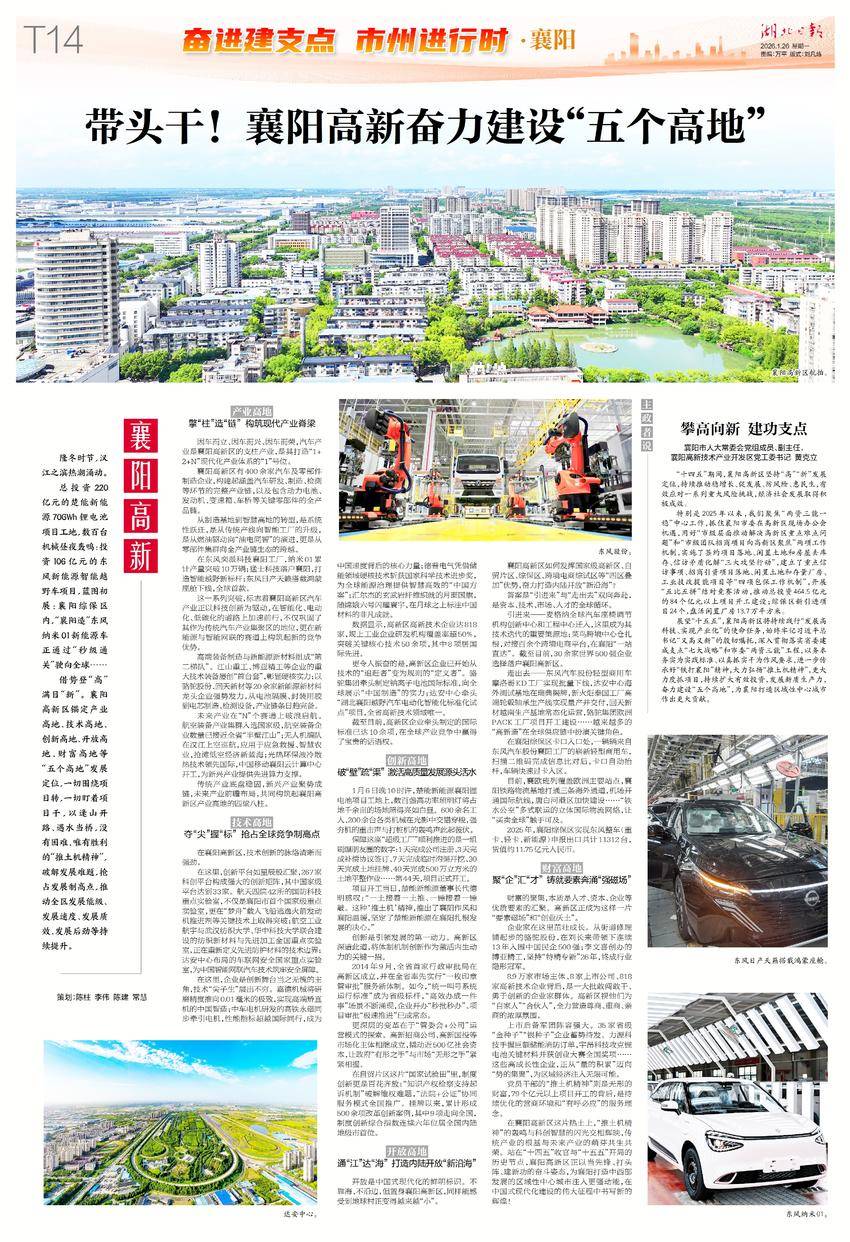借势登“高”满目“新”。襄阳高新区锚定产业高地、技术高地、创新高地、开放高地、财富高地等“五个高地”发展定位,一切围绕项目转,一切盯着项目干,以逢山开路、遇水当桥,没有困难、唯有胜利的“推土机精神”,破解发展难题,抢占发展制高点,推动全区发展能级、发展速度、发展质效、发展后劲等持续提升。