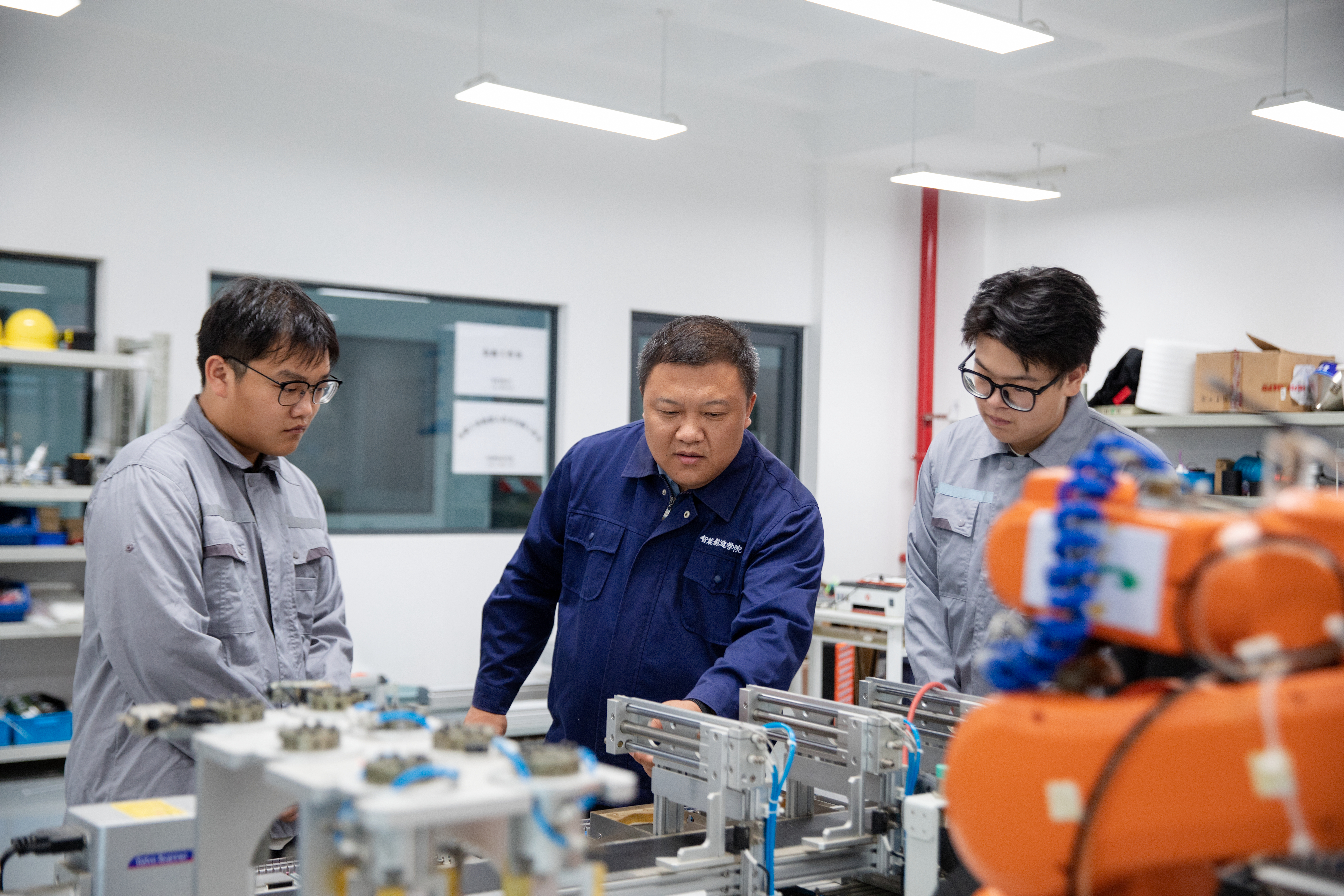 对接企业强服务,把科研绩效写在新质生产力提升上。制订《服务黄冈行动计划》,改革科研绩效评价办法,组建100余支团队开展技术服务“百团大战”。联合鸿路钢构等企业成立湖北省装配式绿色建筑技术创新中心,承担省级科技计划项目10余项,编制行业标准7项,转化成果3项。联合鑫垚公司共同承担湖北省重大科技项目“功能蛋”技术研究,助力浠水鸡蛋产业发展。联合华泰窑炉共同研发六轴机器人自动装卸料系统,推进黄冈窑炉行业数智化升级。目前,学校已联合企业建设省级技术平台3个,立项省级科技项目48个,成立12个企校联合创新中心,服务超1000家企业,助力20余家企业成为产教融合型企业,10余家公司成为专精特新“小巨人”企业。