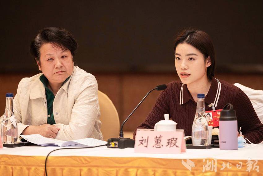 1月26日,在共青团和青年联合会、体育界、对外友好界小组会议上,省政协委员刘蕙瑕(右)发言。(湖北日报全媒记者 薛婷 摄)