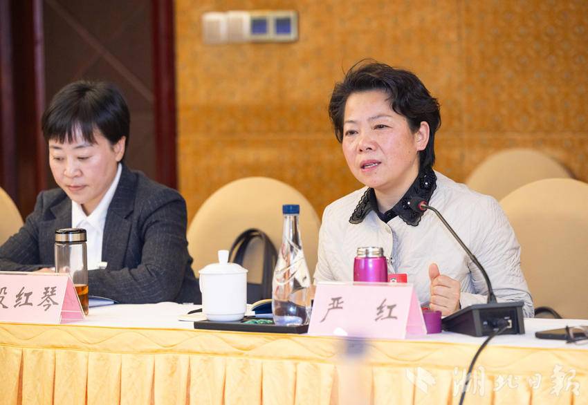 1月26日,在总工会、社会福利和社会保障界小组会议上,省政协委员严红(右)发言。