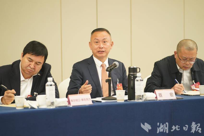 在工商业联合会小组会议上,省政协委员蹇宏(中)发言。