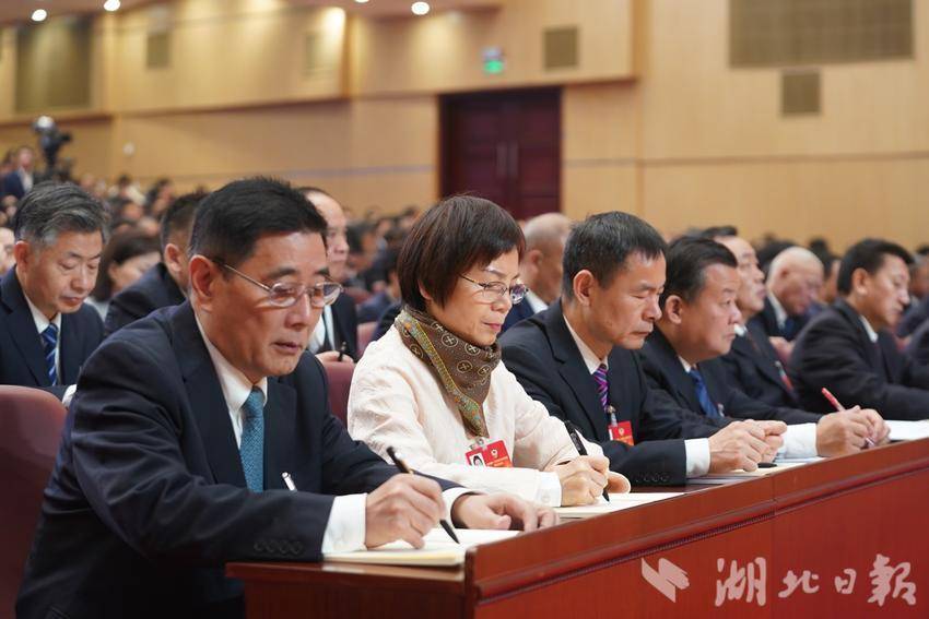 省政协十三届四次会议开幕会现场,委员们认真记录。