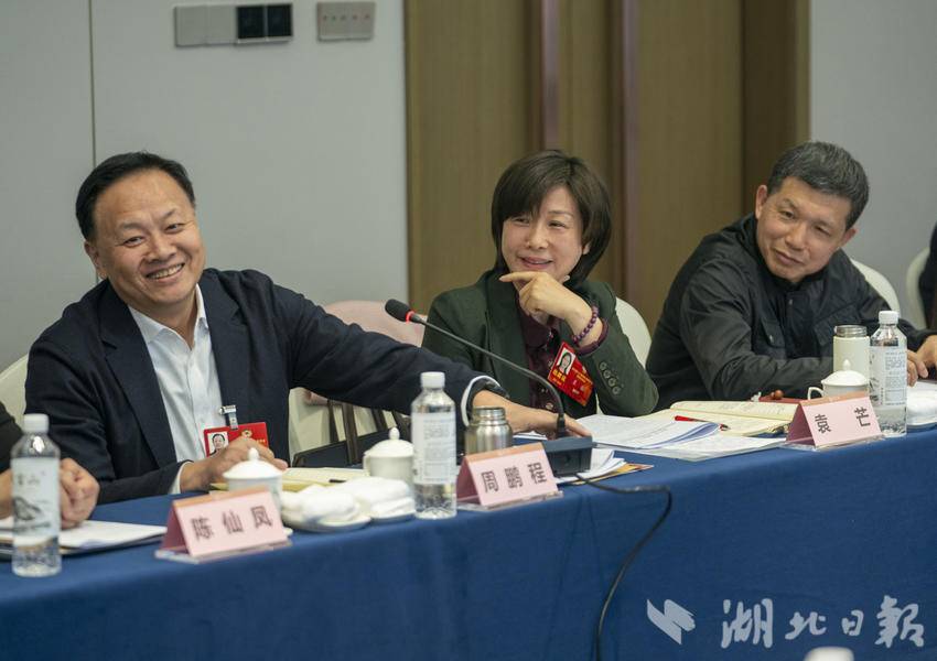 在教育界小组会议上,省政协委员周鹏程(左一)发言。