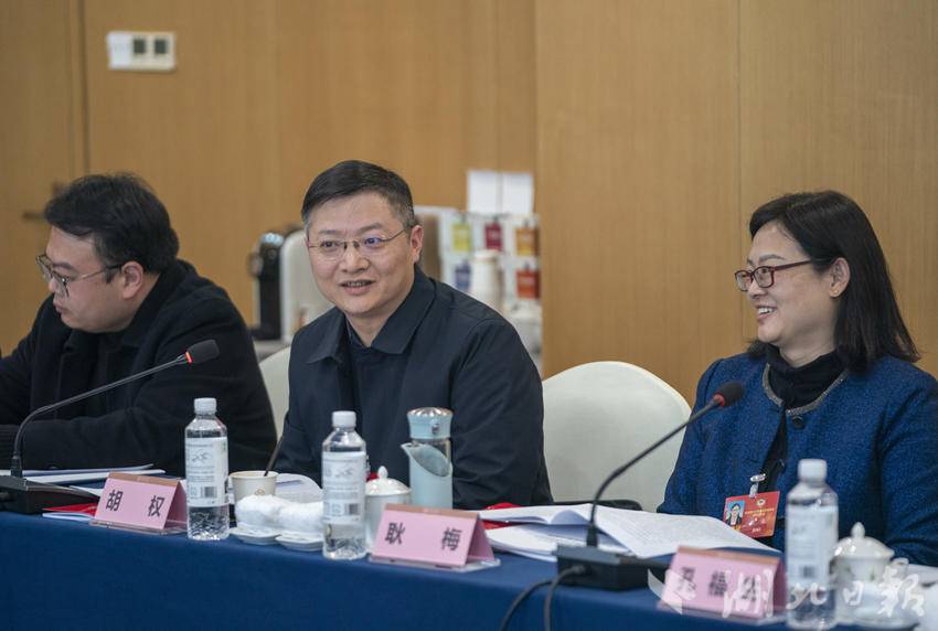 在九三学社小组会议上,省政协委员胡权(中)发言。