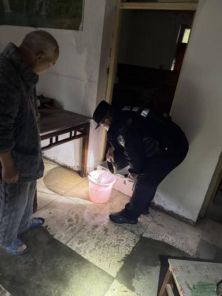 为尽快堵漏减少群众损失,民警通过多方联系到漏水房屋的屋主,并联合社区人员,按规范打开了房门。民警发现卫生间一处水管爆裂,地漏被脱落的墙皮碎屑完全堵塞,积水已淹没全房,并持续向楼下渗透。民警立即进行疏通地漏工作,快速排出室内积水,同时联系专业人员到场对破裂水管进行维修,及时遏制了漏水情况进一步恶化。